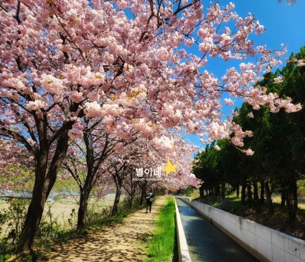 경주 봄에 가볼만한곳 베스트 10 4월 겹벚꽃 명소입니다. 보문관광단지로 향하는 길목에 자리한 숲머리 뚝방길은 4월이 되면 겹벚꽃으로 물듭니다. 널리 알려진 벚꽃 명소들과는 다르게, 한적한 분위기 속에서 천천히 걸으며 꽃을 감상할 수 있는 곳입니다. 길을 따라 걸을 때마다 탐스럽게 늘어진 겹벚꽃이 머리 위로 가득 펼쳐지고, 바람이 불면 꽃잎이 천천히 흩어지며 길 위에 내려앉는 모습이 눈길을 사로잡습니다.