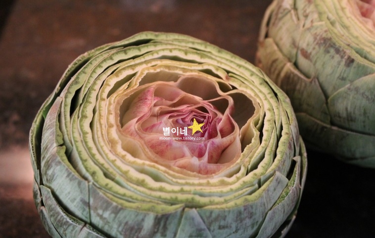아티초크를 손질하는 방법은 가위로 아티초크의 가시를 잘라 제거하고 손질한 아티초크를 반으로 잘라 냄비에 넣고 식초 한 큰술을 넣어 5분가량 삶아줍니다. 삶은 아티초크를 찬물에 헹구어 준뒤 털 부분을 모두 없애 나머지 손질을 해줍니다. 손질한 아티초크는 꽃봉오리를 받치는 부분만 식용하도록 합니다.