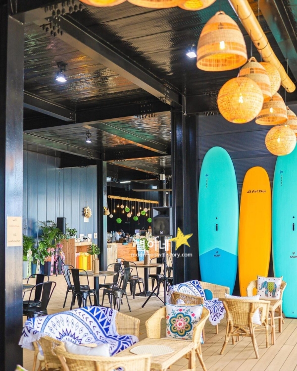 빈백에 누워 바다를 감상하거나, 시원한 음료와 함께 하이볼을 즐기며 여름의 분위기를 만끽할 수 있습니다. 서핑 강습도 가능하고, 강사님들의 친절한 지도로 초보자들도 쉽게 배울 수 있었습니다. 이국적인 인테리어와 분위기는 마치 해외 휴양지에 온 듯한 느낌을 주는 국내 힐링 여행지 베스트 10 입니다.