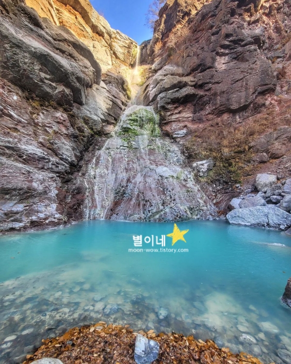 폭포의 주변 경관은 한국의 그랜드캐니언이라 불리는 통리협곡과도 이어져 있어 더욱 매력적입니다. 오전 9시~오후 6시이고 안개 끼면 출입 통제입니다. 소요시간은 왕복 40분~1시간이며 행정구역은 삼척이지만 태백 주요 관광지와 가까워서 태백 여행할 때 가기도 좋습니다.
